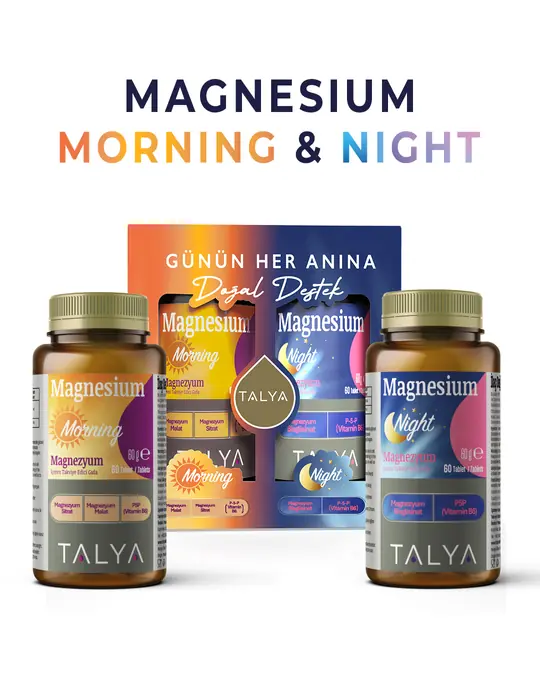 Seti Mbështetës i Mëngjesit dhe Natës me Magnez përmban dy formula të ndryshme të zhvilluara posaçërisht për përdorim në mëngjes dhe në mbrëmje.
